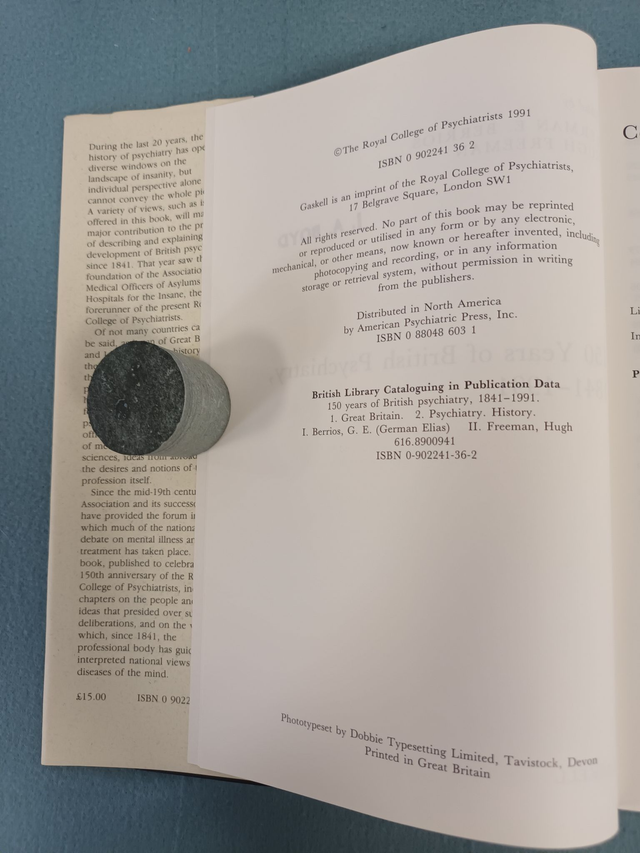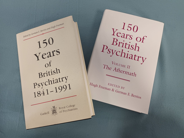150 YEARS OF BRITISH PSYCHIATRY 1841 - 1991 PUBLISHED BY GASKELL & ROYAL COLLEGE OF PSYCHIATRISTS AND VOLUME II THE AFTERMATH. PUBLISHED BY THE ATHLONE PRESS. BOTH VOLUMES ARE EDITED BY HUGH FREEMAN & GERMAN E. BERRIOS