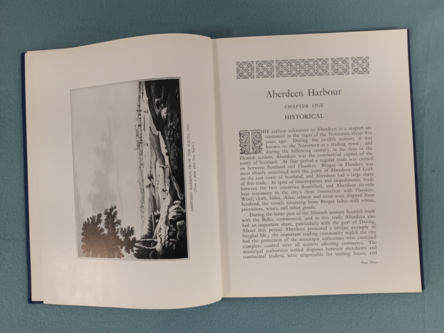 A historical and technical overview of Aberdeen Harbour created for The Harbour Commissioners. The book includes vintage adverts of the period. This copy is in very good condition with no foxing, wear or fraying. A very good gift for someone with an interest in Shipping, Engineering or Aberdeen in general.