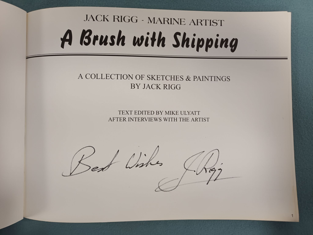 JACK RIGG - MARINE ARTIST: A BRUSH WITH SHIPPING. SIGNED BY ARTIST.