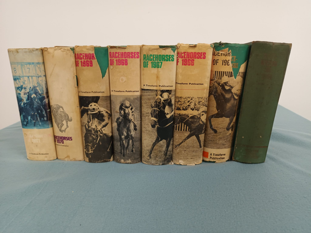 8 very collectable "Racehorses of" ranging from 1964 to 1971. These volumes list all racehorses of the period, along with great examples of industry vintage adverts.