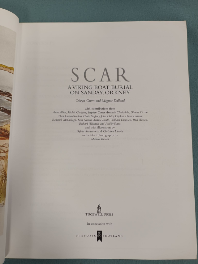 SCAR - A VIKING BOAT BURIAL ON SANDAY, ORKNEY BY OLWYN OWEN AND MAGNAR DALLAND. PUBLISHED BY TUCKWELL PRESS 1999