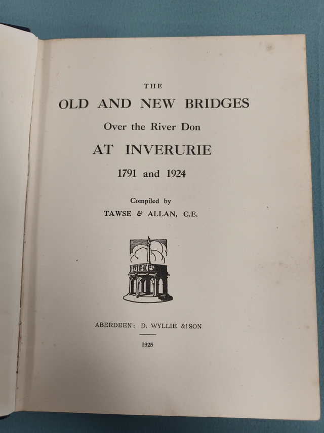 THE OLD AND NEW BRIDGES OVER THE RIVER DON AT INVERURIE 1791 AND 1924. COMPILED BY TAWSE & ALLAN, C.E. PUBLISHED BY D. WYLLIE & SON 1925.