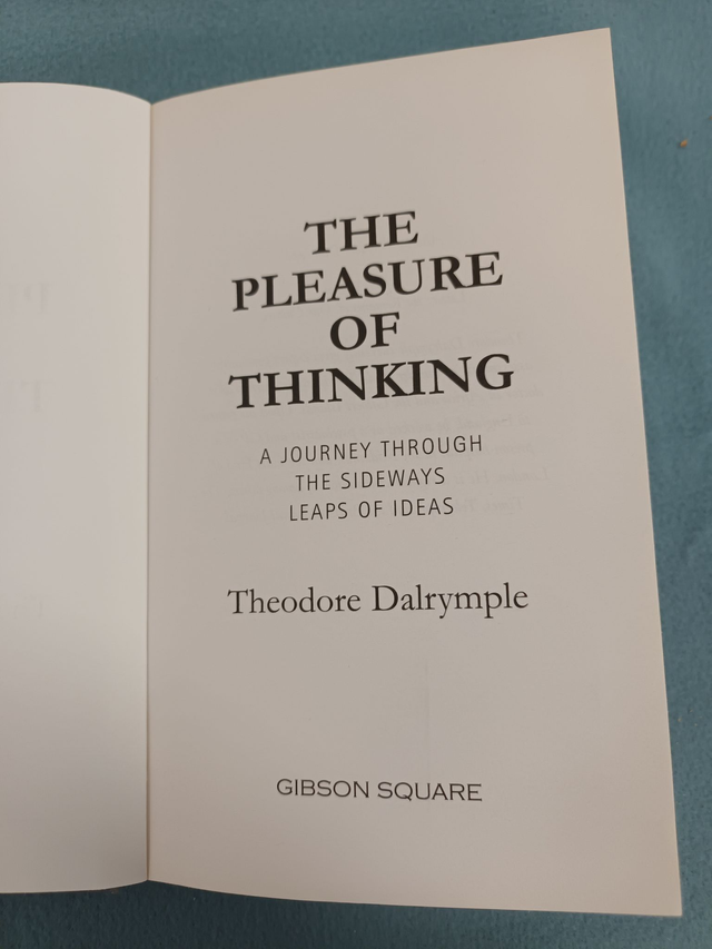 THE PLEASURE OF THINKING; A JOURNEY THROUGH THE SIDEWAYS LEAPS OF IDEAS BY THEODORE DALRYMPLE. PUBLISHED BY GIBSON SQUARE 2012